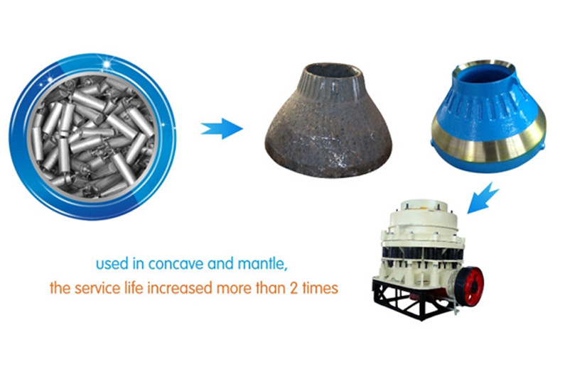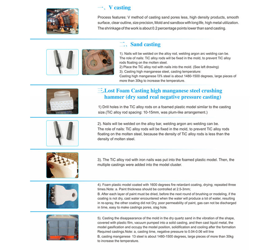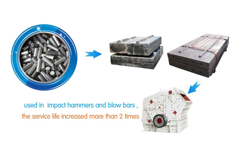 It mainly used in high manganese steel crusher hammer head, concave, mantle, large jaw plate, vertical grinding liner, ball mill liner, blow bars,excavator bucket teeth, feeding chute of blast furnace and coal mill grinding roller